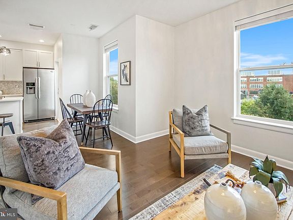 A stunning corner penthouse condo awaits with an incredible 3 outdoor spaces and deeded parking in the heart of Capitol Hill East. Luxe contemporary finishes fill the grand two-story layout with 2 bedrooms and 2 bathrooms. Gorgeous hardwood flooring, high ceilings, and massive windows frame the open home filling the space with natural light accented by recessed and custom lighting. The sleek kitchen will satisfy the most discerning home chef with stainless steel pro appliances, gas cooking, quartz countertops, tile backsplash, and an island opening to a balcony. The layout is an entertainer’s dream with open flow to the living and dining areas along with the home’s outdoor spaces. An exquisitely tiled full bathroom completes the impressive main level. Elegant hardwood stairs lead to the magnificent primary suite with a spacious private balcony, walk-in closet, and a luxuriously tiled en suite bathroom. The second bedroom is bright and spacious with great closet space. The spectacular rooftop deck will surely be your favorite spot to relax and entertain with plenty of room for seating and dining areas to enjoy sweeping views of the city including the Washington Monument and the Capitol Dome. Assigned deeded parking and stacked laundry add to the allure of this must-see home. The home’s ideal location is the perfect starting point for work and play. Easy errands and neighborhood favorites surround the home with Safeway, Starbucks, The Pretzel Bakery, and The Roost. Moments to Eastern Market adds tons of shops, restaurants, and cafes. The upcoming redevelopment of RFK will add even more to see and do. Commuting options abound with access to two Metro stations, Metrobus, and direct access to the new Amazon HQ and Reagan National Airport.