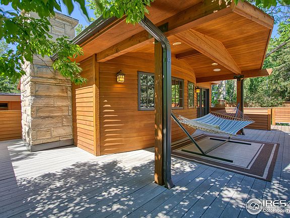 One of Lower Chautauqua's finest homes is now available for the first time! This stunning 4-bedroom, 3-bath custom crafted house built on 2-lots, is nestled at the base of Four Pines Trailhead. Owners have transformed this home into a sanctuary, inside & out. It captures the beauty of the outdoors by thoughtfully placing paths to tranquil settings. Fine details of functionality & artistic consideration were focused on lighting, window placement, custom trim & stone work. Design emphasis captures the unique architectural aspects around nature & natural lighting. Entertaining in this exquisite home is made easy, with a 48" 6-burner gas Viking stove & griddle, oversized Viking refrigerator, 2-ovens, 2-sinks & whole house water filtration system. Separate dining & seating offers a view through the double-sided fireplace into the great room. Escape to the spacious primary suite with a private stone fireplace, a built-in desk, seating area & shelves, a 5-piece bath & 2-separate closets, outdoor access with mountain views, a wrap around deck & hot tub. The original home ceiling beams were remilled & designed for stereo & theater cabinets. Hydronic radiant heat flooring controls the temperature & comfort throughout the home. The lower level has additional bedrooms, laundry, a full bath and mud room. The basement hosts a 3rd fireplace, wet bar, fridge & opens up to additional space for outdoor enjoyment. The landscaping incorporates an original old Maple, an American Elm & incredible boulders that were uncovered during the remodel. Raised garden beds, Apple, Pear, Plum & Tart Cherry trees, Autumn Blaze Maples, a dazzling Weeping Willow & a Japanese Maple are just a few of the mature trees around. Perennials include raspberries, lemon balm, tarragon, sage, oregano & catnip all which are abundant. This sought after neighborhood has a history dating back to the 1800's when this land below Chautauqua was an Apple tree & chicken farm, now this history is ready for a new story.