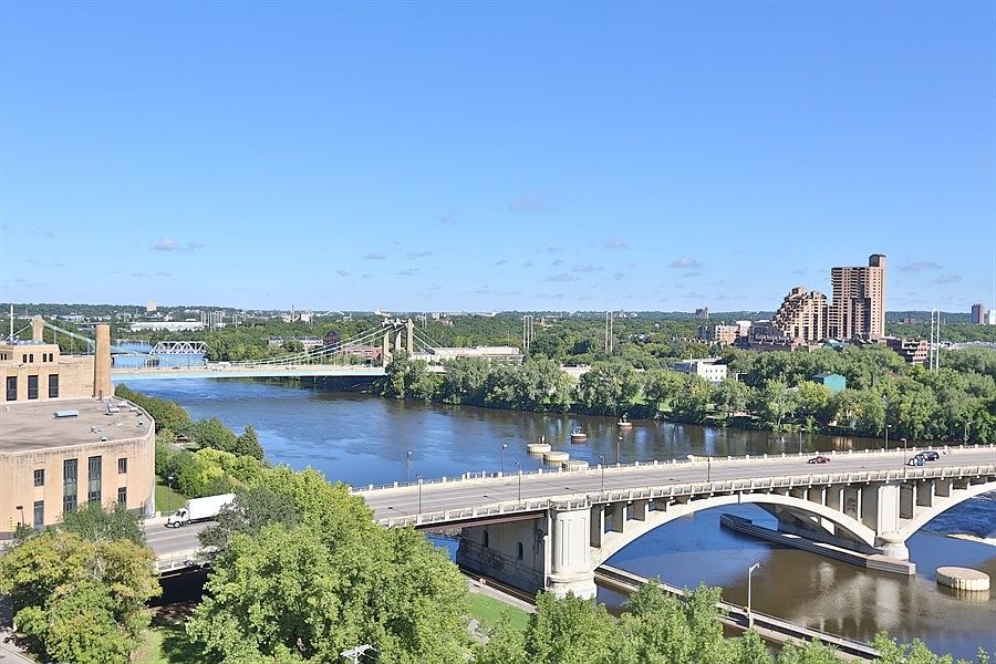 Available for PRE-MLS showings through listing agents Lyman and Denise Jenkins of Edina Realty - call/text 612-490-2733 or 612-418-6044 OR email TeamJenkins@EdinaRealty.com. This Mill District unit is the epitome of mint. Before we describe the building and condo, we think it's important to let you know that there is a city ordinance that restricts new building permits, in the Mill District, for buildings taller than 6 & 8 stories, respectively, depending on exactly where you are. Given that this unit is on the 13th floor, it is well above the ordinance's max height so your view will be protected. The condo itself has been very well cared for, is staged beautifully and features lots of bells and whistles. The balcony offers views of BOTH the Mississippi River AND the downtown Minneapolis Skyline --- lots of buildings make you choose! You can also see the new US Bank Stadium from your bedroom window!! The condo features GE Monogram and Profile Stainless kitchen appliances, engineered hardwood floors, a legit dining space, two (2) en-suites with upgraded tile, granite and nickel baths... The kitchen also features granite counters, stainless sink and faucet, 42" cabinets and an adjacent in-unit laundry. All that and we've not yet described all that the Riverwest building offers. The building is very amenity-rich, and features two party rooms (one with a pool table) with full kitchens, plenty of seating and TVs; a high end fitness center with Precor and Life Fitness equipment; an outdoor pool with adjacent party deck that features built in grills, a plethora of seating and a gas fireplace; an indoor sauna; an indoor hot tub; showers; package room; indoor car wash, air compressor and vacuum; lots and lots of guest parking - 28 spaces; whole building security; a secure entrance with a fully staffed front desk; fairly new elevators; and even vending machines!! All this in the exclusive Mill District, walking distance to all that downtown has to offer- jobs; dining; theater; arts; Timberwolves; Vikings; Twins; shopping; coffee; the library; nightlife; recreation --- Waterworks Park is coming soon as well! If you are in the market for a downtown condo, and want something with an established homeowner's association (new construction can't say that), lots of amenities, amazing views in a location that can't be beat, without spending more than a half million dollars, look no further. Schedule your showing today and see it before it's gone!!!!!!!!!!
