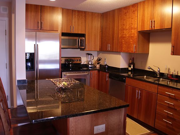 FABULOUS RIVER VIEWS! Extremely spacious unit with one of the best floor plans in bldg., fantastic kitchen w/ stainless steel appliances, granite, and cherry cabinets, huge bedroom, in-unit laundry. Great pool, exercise and party rooms. Unbeatable location!