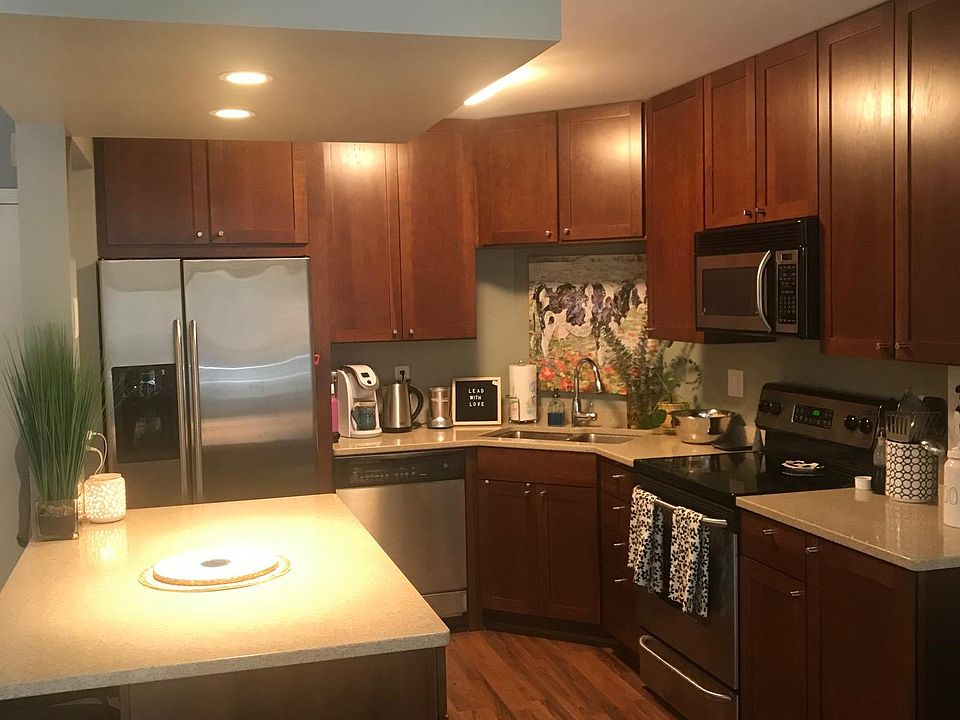 Beautifully updated condo unit for rent, newly refinished hardwood floors, granite countertops, stainless appliances, and TONS of closet space. Rent price gets you all utilities, cable through directv, high speed internet through comcast, in-unit laundry, and a balcony. 1 pet (cat or dog) allowed per unit - additional deposit and charge may apply. 1 Heated indoor parking spot can be added for $150/month. The building amenities include an outdoor pool, newly remodeled gym (it's big!), sauna, hot tub, dog park, 24 hour guard, and 2 public rooms available for rent. Email for any questions. Rental price includes basic cable and internet, 1 heated parking spot, and water. Gas and electric are at the expense of the renter monthly.