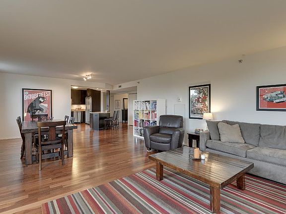 Newly painted corner 2BR+Den, 2BA, 2 Pkg, overlooking St. Anthony Falls with over 1800 square feet of living space! Walking in you'll notice the hardwood floors throughout living space, kitchen with granite countertops and stainless steel appliances (and soon to be installed subway backsplash), large balcony/patio area facing river, two walls of windows providing great natural light, carpet replacement scheduled for bedrooms and den, custom closet organizers to be installed, laundry room and more! RiverWest is located between the Stone Arch Bridge and 3rd Ave Bridge, across the street from the new plaza and restaurant. Amenities and services include 24 hr. front desk/security, two community rooms, outdoor pool and community deck, large fitness center, free indoor guest parking. Included in rent: 2 indoor parking stalls, storage unit down the hall from the unit, water/sewer/trash, gas, basic cable & internet.