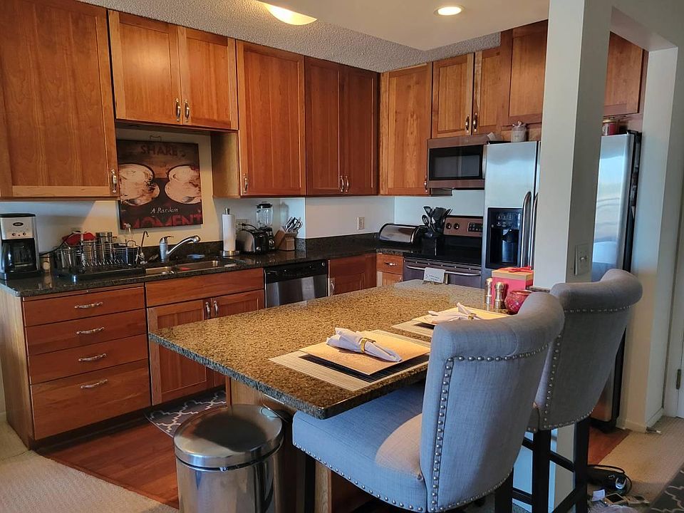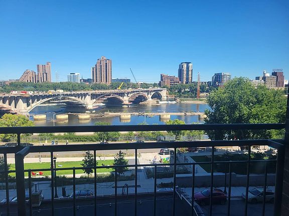 Open-layout downtown condo with panoramic river views! Features: open great room/living room/kitchen entry layout, with walk-out from living room to the balcony for sunny river views. Hard wood floors in kitchen and main living area. The open kitchen features a center island, granite counter tops, maple cabinets, stainless steel appliances, stove, microwave, refrigerator and dish washer. Additional features include: Large master bedroom with a walk-in closet, two built-in dressers and organizers, full-tile bath with granite counter tops and maple cabinets. Built-in washer & dryer, neutral decor throughout. One heated underground parking is space included. The building features a great work out facility, pool, sauna, two entertaining rooms, and outdoor grilling stations. Just blocks from downtown, skyway, light rail, Stone Arch Bridge, recreational river trails, parks, theaters, shopping, grocery stores, restaurants and more! $1475 a month includes heat and basic cable: available November 1st. No pets, No smoking. Minimum one year lease. Contact Jim Lee for details. No pets, no smoking.