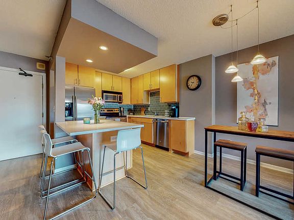 Welcome to this beautiful 1 bedroom 1 bathroom condo located in the desirable Mill District of Minneapolis! This must-see condo features an updated open-concept kitchen with quartz countertops, subway tile backsplash, stainless steel appliances and plenty of cabinet and counter space. The light and bright master bedroom offers a walk-in closet and city views. Building amenities include, 24-hr security, fitness center, dog park, onsite maintenance, 2 community rooms, and outdoor pool. You will love the views of the Minneapolis skyline from the private balcony! Beautiful new Water Works park project in progress just steps from RiverWest for your future enjoyment. Awesome location in walking distance to the Mississippi River, Stone Arch Bridge, Nicollet Island, the Guthrie and premier Twin Cities restaurants. Move in and enjoy!
