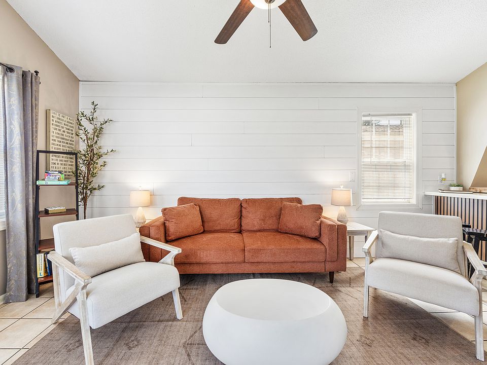 The cottage is located in a couple minutes walking distance to the beach. Shops, restaurants and entertainment is close by and just a short drive away. Our furnished cottage has been updated with tile flooring throughout (except the 2 bedrooms), a big counter and new amenities. It has an open floor plan with living room, dining area and kitchen combined into one big space. The world map is the eye catcher in the living room. A private porch opens from the living room providing a perfect spot to enjoy the weather. The home has one full bathroom which has a tub/shower combo as well as a smaller bathroom with a shower only. Both bedrooms have big closets and the unit also comes with a washer and dryer. - Fully Furnished - Electric, internet included - Lease on a month to month basis, not interested in long-term leasing - No smoking, no parties