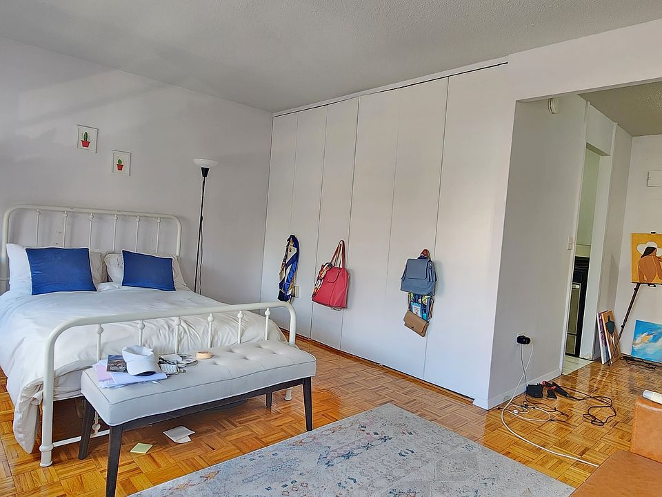 Situated in a high rise 24-hour attended lobby building, this home is a spacious studio apartment with unobstructed spectacular views. Boasting big open views and flooded with natural light, the apartment has a spacious living area, 3 huge closets, and a separate kitchen with ample cupboards and cabinets, and full-sized stainless-steel appliances including a dish washer. The building's amenities include package service, a gym, free bicycle storage, a laundry, sun deck, and a garage. It also has easy access to trains, shops, and restaurants. To view give me a call at any time or send me an email.