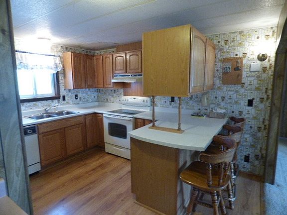 Fantastic Garage attached to this home in Moore, all sitting on an oversize lot ( 12500 sq ft.) with established trees and landscaping. This home is on a permanent foundation and has some fun features like the open kitchen, gas fireplace insert, master bedroom, air conditioner, and more. Garage has 2 large doors, and tons of space inside with even more off street parking in the long driveway.