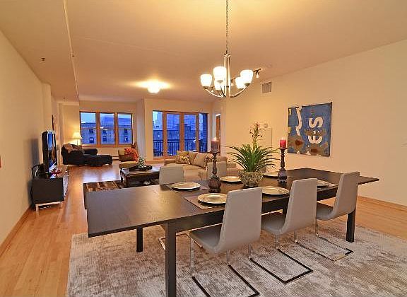 Downtown dream home is realized, Soaring 10 FT ceilings, Gourmet Kitchen, Maple Floors throughout, Private Balcony w/amazing city views. High demand 5th Ave Lofts building. First floor market, 3 Block walk to Twins Stadium. Home was built about 6 mo ago.