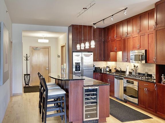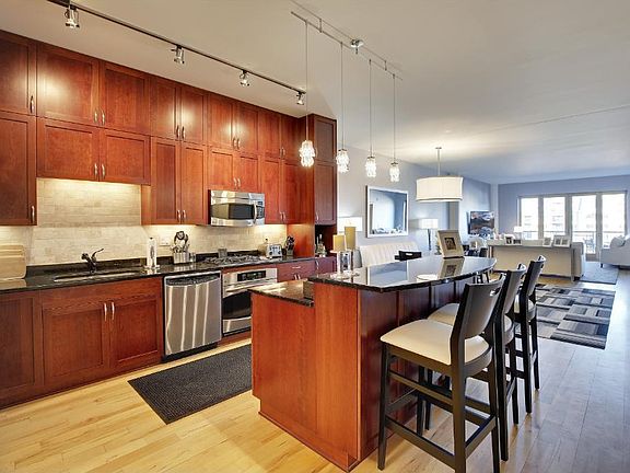 Highly sought after 5th Ave lofts in desirable North loop. Elegant & stylish top floor home with $65,000 in improvements! 2 bed + den includes a balcony that looks toward river. Huge master closet, top of the line kitchen, extra storage - MUST SEE!