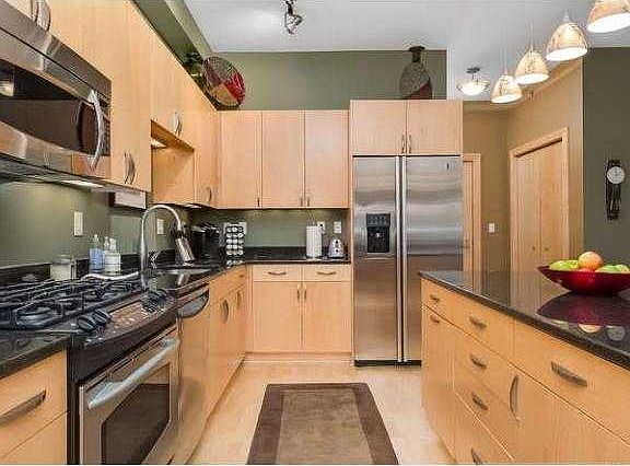 Lovely 2 bd/2ba,1car garage(option 2nd stall across at Marriott hotel-underground,heated,$115/mo(buyers expense). Tons natural light/SW sun.Upgraded lighting,ceiling fans,custom paint,custom blinds.Xtra storage.Gourmet kitchen.Bigger Mas Br.Dog run.
