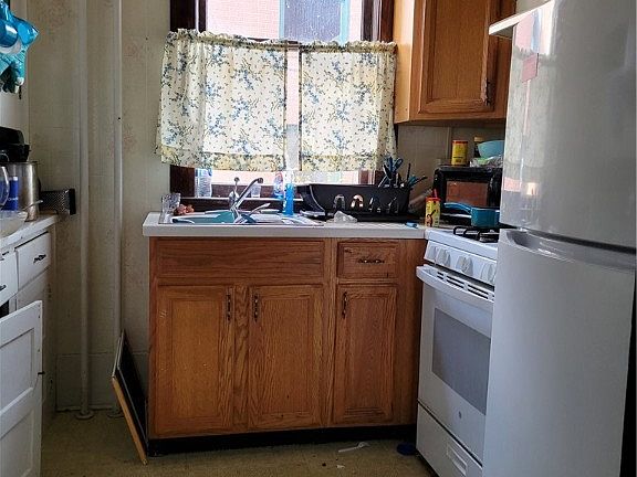 Large Brick Duplex on a corner lot! Roof recently replaced! One side currently rented. Each unit has the same layout. Two open rooms for Living and Family Rooms, Large dining room off of the kitchens. 3 Bedrooms and 1 full bath upstairs and on each unit a bonus finished 3rd floor consisting of two huge rooms! One side is currently occupied, the other side, with some new carpet and flooring will be ready to rent.