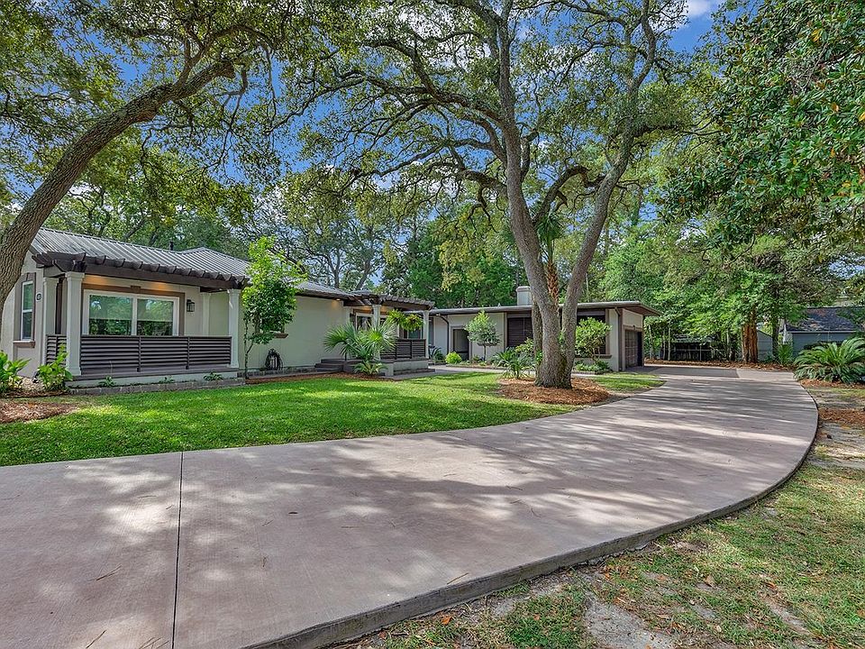 Looking for location and luxury! This contemporary coastal estate is located on the Golden Mile section of Myrtle Beach.  It was originally built in 1955 and has been taken down to the studs in 2018.  All new metal roof, insulation, insulated windows, all new plumbing, electrical, HVAC, 2 Rinnai hot water heaters, and much more!  This home is like new and rests on 1.15 acres in the heart of Myrtle Beach.  It is an impressive home with so many opportunities.  The homestead has 4 bedrooms and 4.5 baths and is designed with a separate master bedroom and sitting area wing with a very spacious custom designed master bath. To include: stackable washer and dryer, with very large walk-in shower, jacuzzi tub, and double vanity. The shelving in closets and for linens are all custom. Large gourmet kitchen with custom designed cabinets, top of the line stainless steel appliances, a Thor professional natural gas range with six burners and a griddle, a double electric oven, oversized refrigerator and freezer (a chef's dream for sure!), all new quartzite counter tops in the kitchen and wet bar area plus a gorgeous custom built island made from Charleston Maple and finished with epoxy top coat. Great for entertaining with extra sitting area with TV, the pendant lights over island and lots of recessed lighting. Beautiful spacious dining room with large windows brings the outside in. Such a happy place! The gorgeous living area with a natural gas fireplace and beautiful coffered ceiling adds architectural detail with wide porcelain plank tile. The large windows without mullions offer lots of natural light. The entry doors are the original and have been refinished as is the back door off of living area. The designer of this home left nothing to spare. Floors are high end material and there is no carpet in the entire home. All beautiful, but simplistic trim and molding for a modern feel. Less is best and this home has clean lines and a is home that you would use every room.  All on one floor with enclosed oversized two car garage.  The remaining 3 bedrooms each have  their own baths with quartzite or marble counters and share a separate laundry room.  There is a hookup for a third laundry room in the garage.  The home features a 5 ton HVAC system, 2 Rinnai hot water heaters and is hard wired for a security and sound system. In addition to this amazing home, there are 2 additional vacant lots that are both very large and can accommodate two additional homes.  Wow....I have a vision to make this a gated compound estate with 2 homes being built as shown on the plat.  No short term rentals allowed.  This could be private retreat for a large family or friends.  Imagine! Only being just a short walking distance to the beach!!!!  A DREAM COME TRUE!