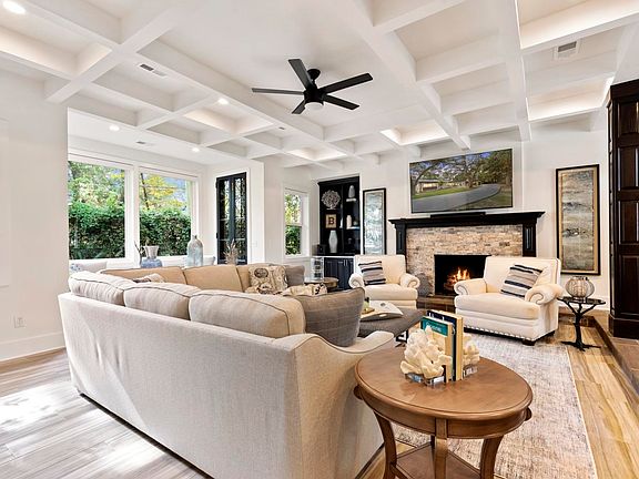 - Features: Tray Ceiling(s), Ceiling Fan(s), Fireplace, Sunken Living Room