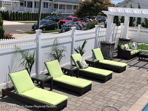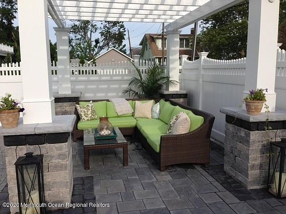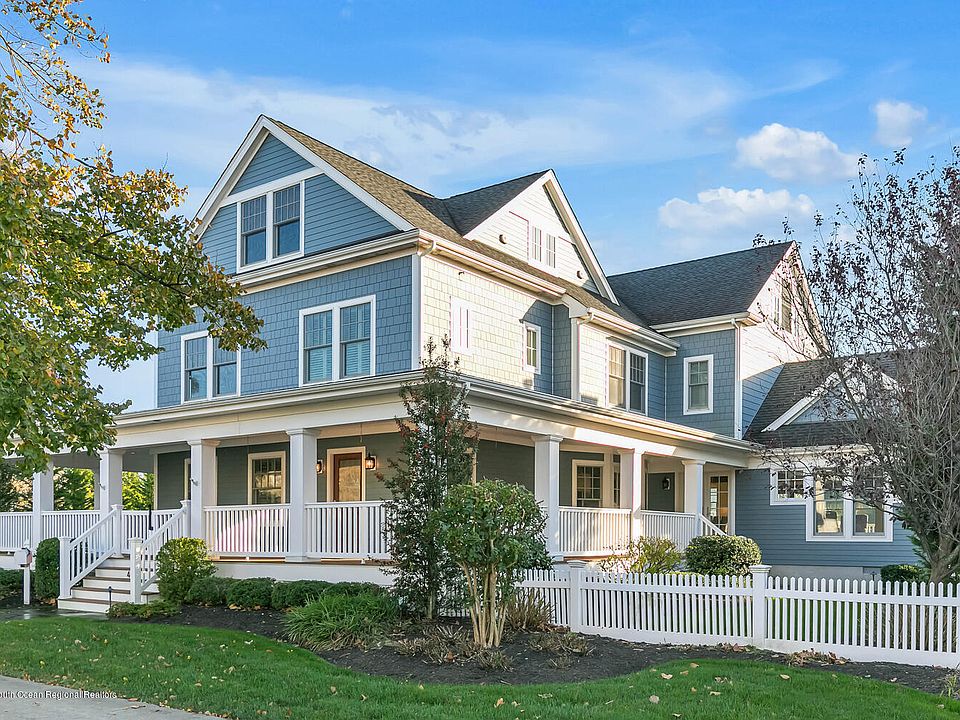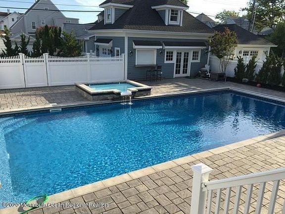 Extremely rare 100x150 double lot with completely renovated home in premier location. The huge wraparound porch welcomes you to this exquisite home featuring the most modern materials, including hurricane impact glass on all windows, yet it maintains a classic feel that can only be found in the finest shore residences. Hardwood floors throughout, with living and dining rooms leading to large gourmet kitchen and great room. The 2nd floor has 4 bedrooms and three baths, while the 3rd floor offers 2 bedrooms, full bath, open living room area, and a kitchenette to offer a full-service space for guests. The massive yard has a basketball court, huge pool and spa, and a garage with first floor living area and indoor/outdoor bar and an unfinished second floor. The best of Belmar!