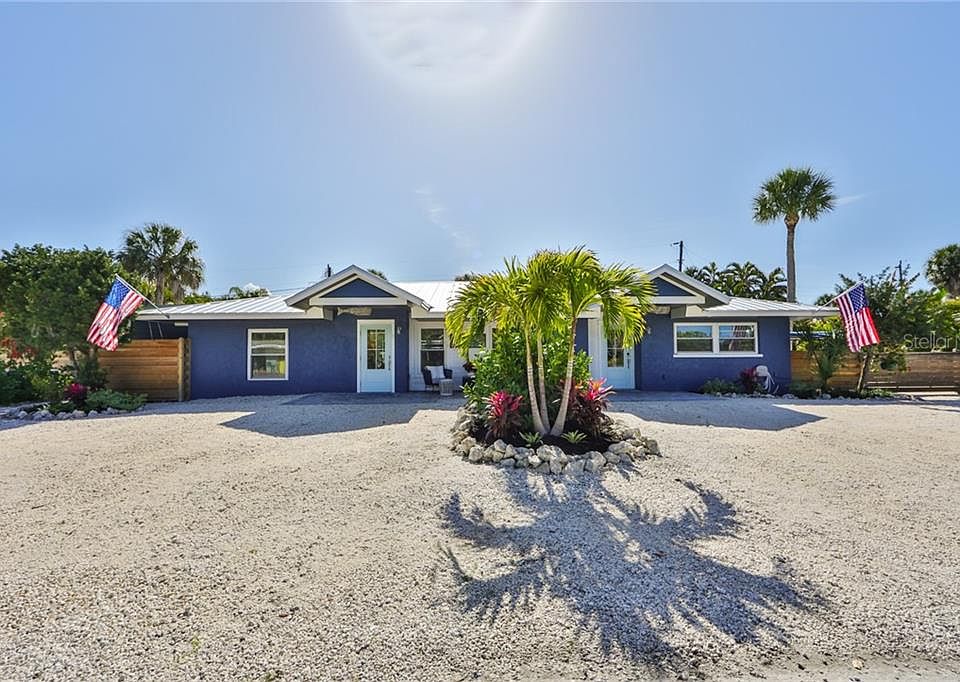 This beautiful meticulously remodeled ground level Duplex is one of a kind on Anna Maria Island. Two amazing homes...each with 2 bedrooms with en-suites and dens with an additional bathroom for a total of 4 bedrooms, 2 dens and 5.5 bathrooms. Each home has beautifully landscaped backyards with brand new pools and hot tubs! Everything is new; plumbing, electrical, high- efficiency air conditioning, tankless hot water heaters, state of the art saltwater pools and hot tubs, metal roof, siding, paint, flooring, and brand new Designer kitchens and bathrooms. Designed and built to be two separate homes, but with the ability to open up the back yards to each other with a large barn door style fence system, and doorway framed into hallway for future conversion linking duplex. Investors can rent these weekly, as two units that sleep 6-8 or combine into a large group rental that would sleep 12-16. A very short walk to the beautiful white sand beaches of Anna Maria, this home rests one block from a trolley stop and sits right in the middle of the Island for easy accessibility to either Anna Maria or Holmes Beach city centers. Beautifully customized and furnished by a designer, most of the furnishings are available for purchase. Each unit accommodates 3 car parking and room for a golf cart.