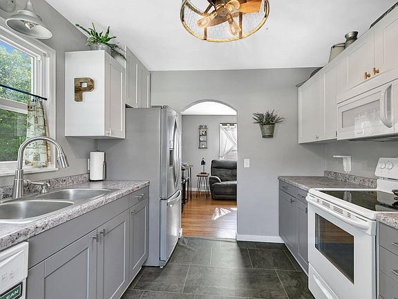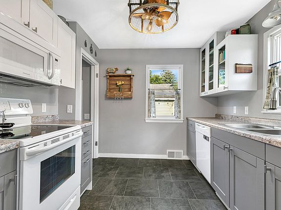 What A Great Place To Call Home! Home has been renovated! Updated kitchen cabinets offers 2 tone white uppers & grey lowers, cook top, microwave, dishwasher, 2023 french door refrigerator. Dining & livingroom has wood floors, electric fireplace, arch ways and barn door. 2 Main floor bedrooms and full bathroom w/pedal sink and hall linen closet. Upstairs offers a large bedroom another room could be an office, 2nd living room or walk in closet with wood floors. Updated carpeting, light fixtures, white trim baseboards through out home. Basement is unfinished. Shutters and flower boxes that gives great curb appeal. Vinyl CA, gutters, 100 Amp, new 22x22 cement patio, new asphalt driveway w/ additional parking, privacy fence with 10' gate and rod iron fence! Home is located on a corner lot in the heart of Buffalo. Partially insulted over sized 1+ car garage.