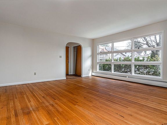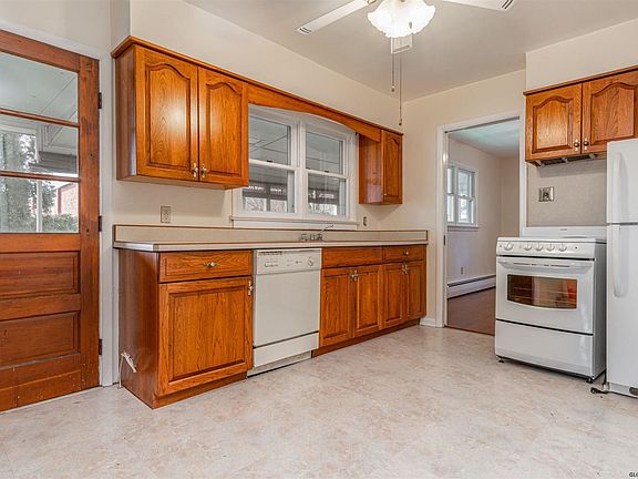 Charming and Inviting 3 BR & 1 BA Mid-Century Port Schuyler Ranch! The ease of one level living with a manageable floor plan makes this the ideal home for today's buyers. Covered entry porch welcomes guests. Spacious combination living/dining room with large window wall and hardwood floor. Country kitchen with oak cabinetry and newer floor. Convenient den (4th bedroom) with separate outdoor entrance. All bedrooms have hardwood floors. Full bath with new floor & vanity. Laundry hookups on 1st floor & in basement. Enjoy the warmer months on the screened porch. Corner lot. Fenced yard with gardens. Detached 2 car garage. Convenient location. Walkable neighborhood. Minutes to Siena College and other destinations. Move-in ready!