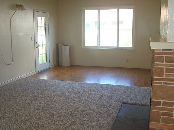 Cozy home in the city of Gonzales. The living room has vaulted ceilings and a wood burning fireplace. There is new carpet and paint throughout the home. The dining area off of the living room has hardwood floors. The home has lots of storage space. Laundry room off of kitchen has a door separating this unit and neighboring unit which will remain locked. Spacious backyard, (gardener included). Spacious dirt parking slab shared with neighboring unit.