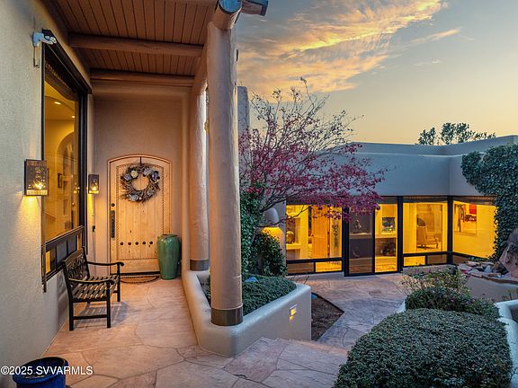 Spectacular Southwest home backing to National Forest and Twin Buttes in Sedona's famed Chapel area. Thoughtfully designed interior showcases impeccable build quality and attention to detail. Floor to ceiling windows invites the breathtaking beauty of Sedona's iconic red rocks into your living space and opens onto the back patio and elevated sky deck- perfect for morning coffee or evening stargazing. Three full bedroom suites plus office ensure privacy from your guests - and recent high end remodel to the primary bath adds value and livability. This luxury home is situated on the edge of town backing to National Forest trails for hiking, biking and exploration and just minutes away from restaurants, shops and amenities. Ideal lock and leave location for your Sedona getaway.