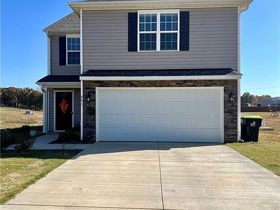 Just like NEW (2021) without the wait! Stone accent on the front. Nice eat-in dining area and kitchen. Spaciuos kitchen with plenty of counterspace, granite countertops, large island and stainless steel appliances. Gas logs in the living room. Open floor plan. All bedrooms are on the second floor and also the laundry room. The primary suite has a nice primary bath with double sink and a big walk in closet. Rear covered porch with extended concrete. LVP flooring in the main areas.