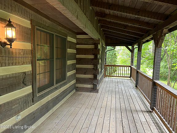 Welcome to 401 Ash Ave. Pewee Valley Kentucky, with two bedrooms, two full baths, a huge great room, dining area, relaxing sunroom (could be converted to a large primary en-suite making 3 BRs, 3 BAs total), and inviting large covered front porch. The covered back porch and separate screened in porch are must sees with amazing views in all directions on this private 1.67 acre lot. Built on a crawlspace, log home. One car garage opening but second opening could be framed to make it a true, two car garage, which has its own separate furnace. Lots of wood interior, and numerous vaulted ceilings. Plenty of room to add your pole barn! Don't miss out on this unique property! Seller is offering a one year America's Preferred Home Warranty to the Buyer(s).