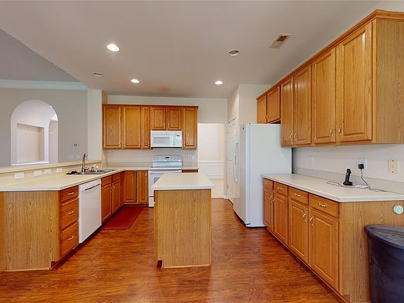 Don't miss this one! Here's that hard to find brick and vinyl RANCH at the end of the cul-de-sac in Hunter Oaks! This open floor plan offers a welcoming foyer with built-ins to showcase your favorite artwork, 4 large bedrooms, formal dining room plus a huge great room with cozy gas fireplace! Enjoy the outdoors? Sit on the back patio with lots of privacy, or enjoy the neighborhood amenities, including pool, playground and tennis courts!