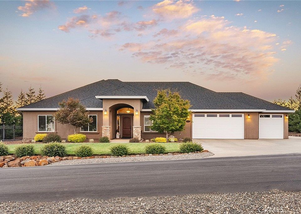 Welcome to your dream home in the highly sought-after gated community of Blue Oak Terrace in Paradise, California. This tranquil neighborhood offers beautiful canyon views, privacy, and security. Less than 10 minutes from Chico, this immaculately maintained and turnkey property offers stunning custom landscaping and an open floor plan concept featuring 4 bedrooms and 3 baths. Natural light fills the interior, highlighting high ceilings and elegant crown molding. The kitchen boasts granite countertops, top-of-the-line energy-efficient appliances, and low-E vinyl windows throughout, ensuring comfort and savings. Step outside to discover a backyard oasis with an in-ground gunite pool, Baja shelf for in-water relaxation, and cascading waterfalls, all framed by full iron fencing with locking gates and gorgeous views. The pool was further upgraded with a Pentair auto chlorinator and an in-floor cleaning/vacuum system, making it truly maintenance-free. The property is topped with a 50-year composition roof on both the house and shop and includes fire and ember safe vents for added protection. Additionally, the home features a whole house surge protector switch for a portable Generac generator. Also included is a brand new OWNED 10.40 kW solar system with a transferable warranty to ensure ongoing energy efficiency. There is plenty of vehicle and storage space with the fully insulated detached 1-car shop with built-in cabinets in addition to the oversized 3-car attached garage. Set on a generous 1.08-acre lot, this home epitomizes elegance and comfort, offering a seamless blend of beauty, luxury, and relaxation. Additionally, the Blue Oak Terrace HOA has plans to install solar for wells to reduce water fees and create a neighborhood walking/dog park. Don't miss out on this rare opportunity to own an extraordinary home in Paradise!