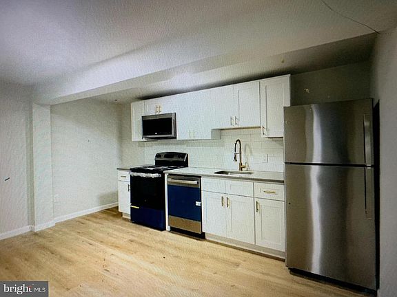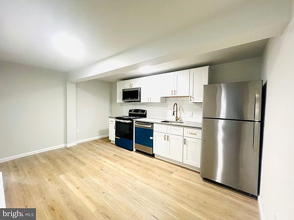 This beautifully renovated 3-bedroom, 1-bath apartment features new vinyl and carpet flooring, offering both durability and style. The kitchen boasts sleek white shaker cabinets, a trendy back backsplash, gold fixtures, quartz countertops, and stainless steel appliances. With its modern finishes and thoughtful design, this apartment is move in ready.
