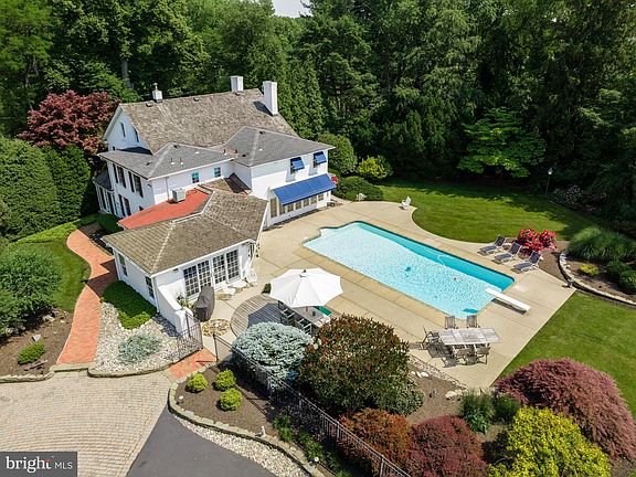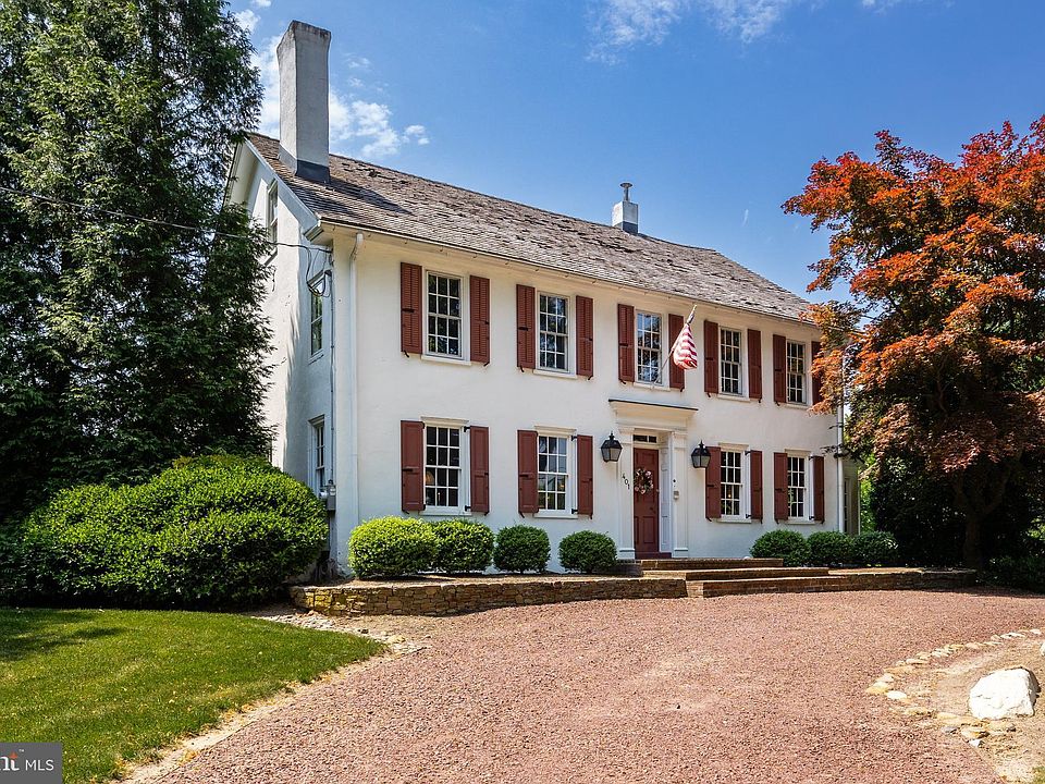 Authentic historic charm and gracious updates lend character to the Abraham Heulings Farmhouse, a local landmark whose original portion dates back to 1720. Set on 2.55 acres of landscaped privacy, scenic grounds contain an enormous 20x40 pool surrounded by expansive patios and a deck, an outside shower, a detached three-car garage featuring a second story workshop and a huge cedar barn . Offered for the first time in 50 years, the present owners have enhanced this center hall Colonial with numerous modern amenities, newer mechanical systems including a whole house generator and updated electric, as well as thoughtful upgrades reflecting its Early American architecture. Two additions, one in the 1970s and another in the 1980s, were sensitively designed by a noted historic architect. Approached by a circular front driveway, access continues to the backyard and garage/barn. Natural light spills into every room from ample windows taking in stunning views of the colorful gardens, green lawns and sparkling pool. Inside, the heart of the home is a generous living and dining room combination warmed by the glow of an antique fireplace dating back to the 1700s. A wonderful country kitchen is updated with warmly-toned wood cabinetry, granite counters, a breakfast bar and sunny dining area. Nearby, a convenient butler’s pantry streamlines entertaining. Leading from the kitchen is an extra-large office opening to the rear patio and pool through multiple sets of French doors. A fireside family room contains custom built-in cabinetry and hardwood flooring. Both the rear and side sun rooms overlook peaceful views of the acreage from walls of glass. This level is completed by an updated powder room. Upstairs, an inviting primary suite offers dual walk-in closets, hardwood floors and a stylish marble bath. Three more spacious bedrooms, a study, updated full bath and laundry are also on the second level. Internal brick walls made during early construction periods provide sound insulation between rooms. Warm weather gatherings are easily hosted in the pool area shaded by retractable awnings, where brick walkways, decorative fencing and the renovated circa 1800 barn create a relaxed country atmosphere. Tucked far back from the road for additional privacy, this Colonial is a true piece of Moorestown history with enough space to accommodate multi-generational living, weekend guests or live-in staff. A rare offering that provides enjoyment during all four seasons, the Abraham Heulings Farmhouse is less than 17 miles from Center City Philadelphia, about 90 minutes from Jersey Shore beaches and close to I-295, shopping, dining and the Blue Ribbon- designated Moorestown High School.
