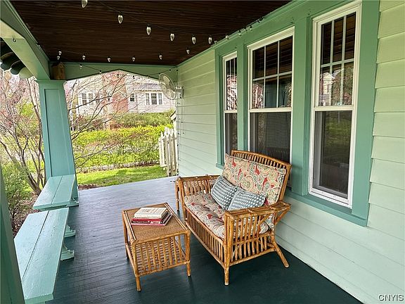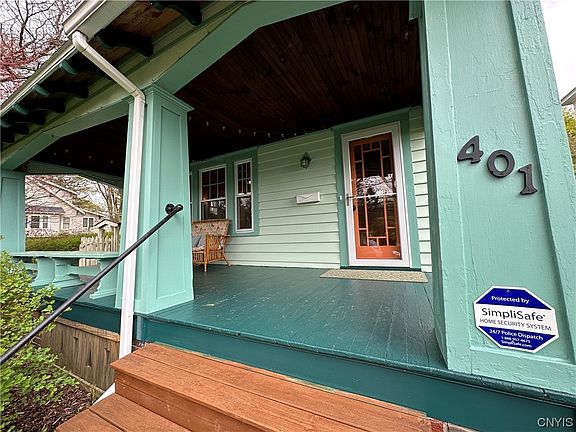 Fall in LOVE the minute you see this Unique Arts & Crafts Bungalow Home. Inviting, private porch. Beautiful natural woodwork and hardwood floors throughout this home. Spacious living-room with fireplace. Archway to large dining room leads to updated kitchen with newer SS quality appliances. Desirable amount if counter space and deep large sink. First floor bedrooms currently used as offices. First floor bath w/ original soaking tub & terrazzo floors. Newer sink, faucet, commade and lighting. Second floor features a sitting room that leads to 2 large bedrooms and a fabulous newer full bath. The lowest level has a relaxing sauna. Private fully fenced yard features a patio, larger than normal one car garage with a new garage door and opener. Secret garden features raised garden beds that is adorably fenced. Replacement windows, radon mitigation system, newer hot water tank, and newer roof. SU 100% FINANCING Area. Walking distance to SU, ESF, UPSTATE Medical, Hospital, & Parks. Final and best offers in by Monday 12noon