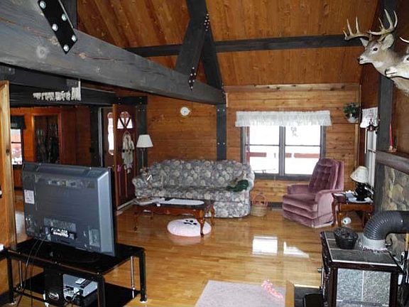 Charming log home nestled on ten acres of wooded land with some apple trees out front. With only one bedroom, this home won't appeal to everyone, but if you want a warm and cozy home (or second home) with the traditional adirondack appeal, this home is second to none. Garage is heated for comfort on those cold adirondack evenings. Fuel usage is approx 236 gallons of fuel oil per year, along with 5 face cords of wood. Electric averages $75. per month.