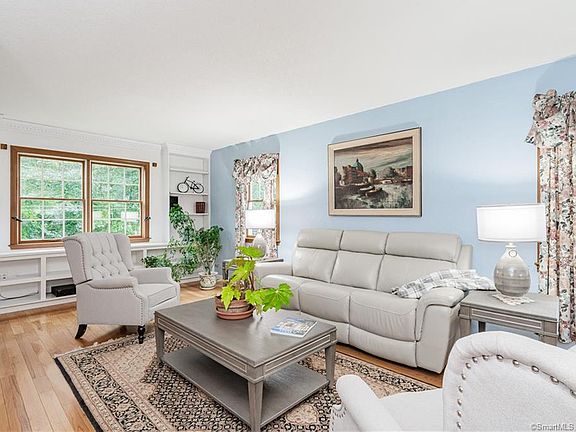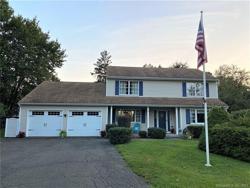 ABSOLUTELY LOVELY INSIDE AND OUT! Spacious 3-bedroom, 2.5-bath colonial set far back from the road. Saturated with natural light, this nearly 2300-sq. ft., well-maintained home with gorgeous hardwood floors will not disappoint! The large living room spans the length of the home with a massive picture window encompassing the front wall. The back wall contains fabulous built-in bookshelves surrounding the large, double windows. Enjoy the stereo system that also connects to wall-mounted dining room speakers. The dining room is open to the kitchen and perfect for dinner parties or family meals. Another large picture window runs across the front of the dining room; chair rails and built-in display shelves span each side. The kitchen is bright and clean with white cabinets, granite counter tops, tasteful neutral stone backsplash, and stainless-steel appliances. Enjoy your morning coffee at the kitchen island breakfast bar. A drop-down leaf comes in handy when additional walking space is desired. Off the kitchen, you will find a warm and cozy family room, complete with a fireplace encased by more built-in shelving. The TV and surround sound stereo equipment, which also feeds backyard speakers, are included! A third picture window in the family room overlooks the large, level, fenced-in, peaceful backyard oasis. With a perfect blend of trees, plantings, and open land, this is a fabulous yard for letting Fido roam or engaging in outdoor games and activities. (MORE) Perhaps a future pool? There is an automatic awning to provide shelter and shade while relaxing on the large patio. Back inside the house, the first floor includes a half-bath/laundry room. On the second floor, you will find two decent-sized bedrooms, a full bath, and the large master ensuite complete with walk-in closet, whirlpool tub, stall shower, and double-sinks. DONT MISS OUT ON THIS FABULOUS HOME!! SCHEDULE YOUR SHOWING TODAY!