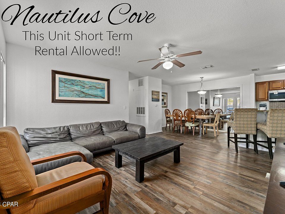 CURRENTLY UNDER CONTRACT, SELLER WILL CONSIDER BACKUP OFFERS. Nautilus Cove is located in central PCB and is a low maintenance and high enjoyment complex! Close to Pier Park and Gulf of Mexico, this appealing unit is conveniently on the ground floor and with this being one of the FEW units that ALLOWS SHORT TERM RENTALS, this one is not to be missed! This unit comes fully furnished, ''rental ready'' and rental projection is 55k! The kitchen features granite counters and stainless appliances in a classic open layout to the super comfortable living area. Within walking distance to the Gulf of Mexico, and an easy drive to Pier Park and everything else Panama City Beach has to offer this unit leaves nothing to be desired. Strong rental history! In addition to the convenience of the private bathroom, you will find plenty of walk-in closet space to let your wardrobe breathe. The other 3 unique bedrooms are a great place to turn in for the evening. The only missing ingredient is you!