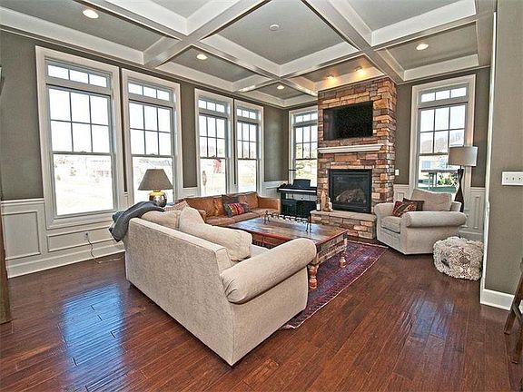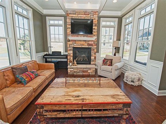 Enjoy low-maintenance, energy efficient living with HOA provided landscaping and snow removal in this single-family, detached custom built home. The main level features 10-foot ceilings, expansive windows and natural light, scraped hardwood flooring, family room with coiffured ceiling, wainscoting, crown moldings throughout, and stacked stone fireplace with limestone hearth, kitchen with expansive peninsula, 42" cabinets, breakfast bar, counter seating, and SS appliances, formal dining room with tray ceilings and sliding door to exterior patio, first floor laundry/mud room, and upgraded multi-room home speaker system. The second floor features a spacious master suite featuring a tray ceiling, recessed lighting, large walk-in closet and custom master bathroom with granite, travertine tile flooring, separate shower and soaking tub. Three additional bedrooms and a full bath complete the second floor. The finished lower level features custom built-ins, electric fireplace, media room wired for surround sound, drop down theater screen, and wet bar. A fifth bedroom and full bathroom are also located on this level. The home is energy efficient with 2X6 exterior walls, high efficiency mechanicals, and tankless water heater. The two car garage is outfitted with extra storage. Enjoy Venango Trails amenities that include hiking trails, a community swimming pool, close proximity to shopping and highways, and a great walkable neighborhood.