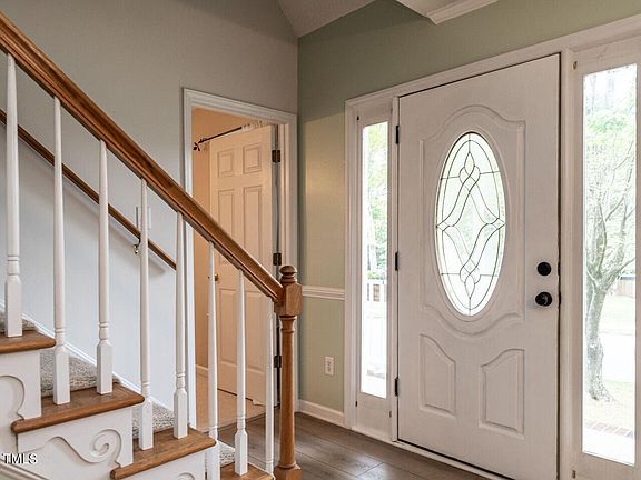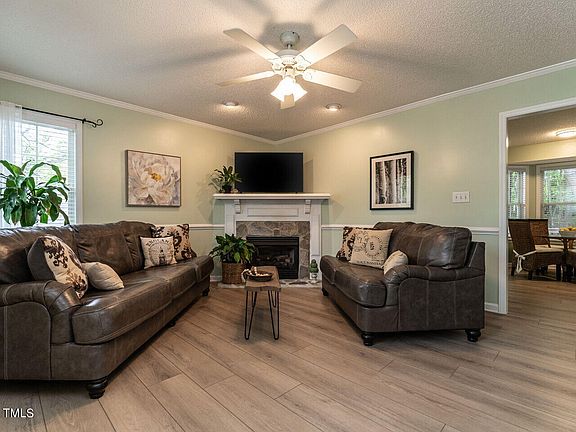Fantastic Location! This Cape Cod home has so much charm on a private wooded lot. 2 miles to White Oak shopping & a short drive to downtown Raleigh. New Roof & LVP flooring in Family & kitchen. Family room has crown molding & stunning fireplace. The room has wonderful natural light. Kitchen has lots of cabinets, pantry & a bay window. The eat in area boasts a view of the private back yard. 1st floor primary Bedroom & bath w/ dual sinks, tile floor, garden tub & a walk in closet. Additional two bedrooms upstairs both with large closets & storage. Home has no HOA. This stunning home is a must see!