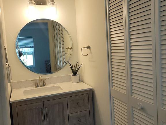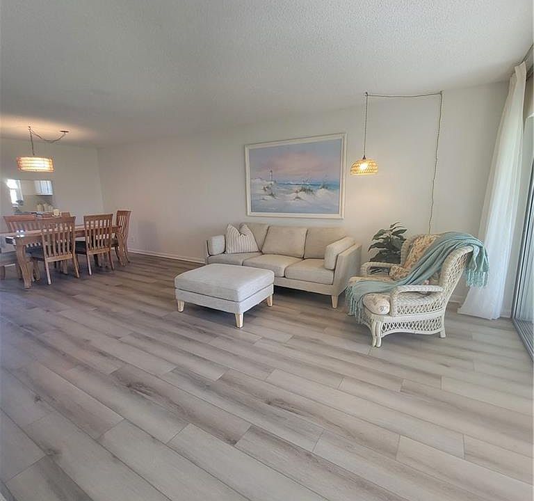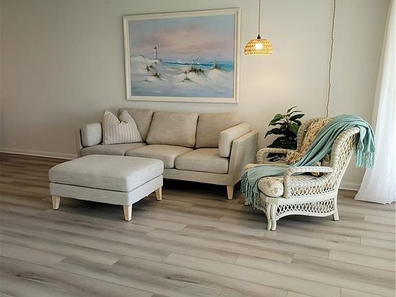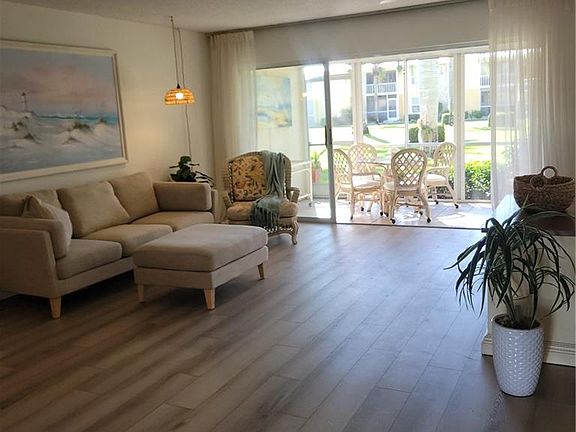Priced to sell! This light and bright end unit is freshly painted throughout, with brand new LVP floors in all living areas. Bathrooms are both newly updated with modern vanities, mirrors, lighting, and new tile floors. This stylish condo is a much sought after first floor end unit, with covered assigned parking and guest parking steps from the front door. The lanai gives direct access to the pool, grill, and cheeky bar and comes with a power shutter for added shade/ storm/rain protection. Windows are hurricane rated and there is a brand new roof! Enjoy this vibrant community with regular "happy hours" for those who like to socialize, and plenty of places to walk or ride bikes. It is also just minutes to pristene Naples beaches, 5th Ave S, shopping, restaurants, groceries, and so much more. Affordable HOA fees with an extensive list of inclusions, and located in Flood Zone X500. This is a mostly 55+ community, no pets. Professional photos to come after recent updates!