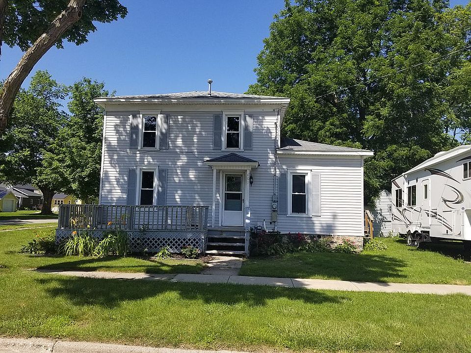 Located on a corner lot, this three bedroom home is now available. kitchen includes a pantry and appliances. Dining room will seat six around the table. Grand foyer. Living room is very roomy. Upstairs are three bedrooms with new carpet. Vinyl Replacement windows. Partial basement. Large front deck. Side deck, Storage shed. New roof 2018 new furnace 2019 freshly painted throughout, updated blue painted kitchen cabinets with new hardware, new bathroom and new laminate flooring on entire main level. custom tile shower and bathroom floor. Freshly stained deck. Beautiful new landscaping. Vinyl siding.