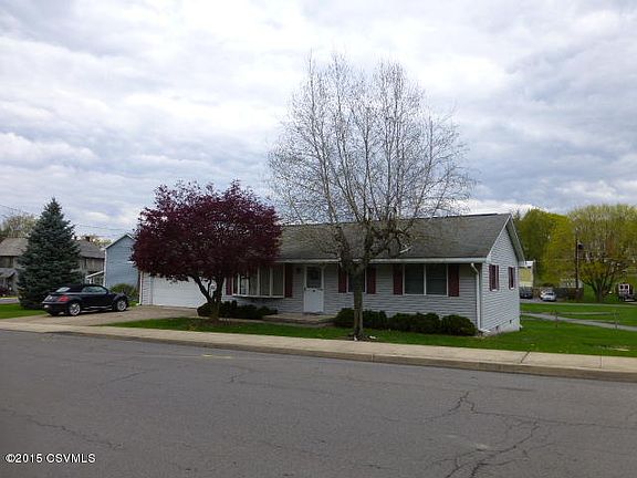 Well maintained ranch home with updated kitchen with large island, dining area, large living room, 2 bedrooms, full bath and half bath with laundry. Updated floor coverings and wall finishes. Additional features include oversized two car garage with drop stair, central air, range, microwave hood, dishwasher, oven and washer/dryer. Roof installed in 2015. Convenient to shopping, schools, employment, I-80 and I-180. Move-in and enjoy one floor living. Call Beverly at 570-850-2963 for details. 10G Property.