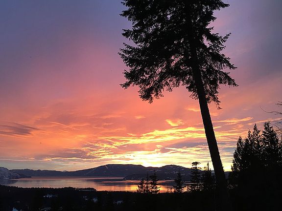 Nestled into the hillside this outstanding Lodge Style custom home showcases some of the most memorable views in the county. 3 bedrooms, all with stunning views and 2.5 bathrooms, hydronic floor heating, well designed living space and all the attention to detail one would expect from a master builder. If you can tear yourself away from the picture windows, bask in the comfort and warmth of real flickering flames in the feature stone fireplace. In summer the forest trails beckon and at any time just relax in the hot tub and marvel at the ever changing Lake and Mountain scenery. This home could easily be adapted to solar and/or hydro-electric power since it is south facing and has Carter Creek running all year around through the property. Large Storage Rooms under the covered parking contain the Emergency Generator with Hook Up. Private location, perfect for hiking yet close to Sandpoint, local Marinas and Restaurants and Schweitzer Ski Resort.