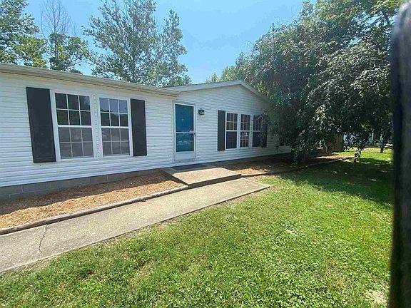 Back on the market due to buyers financing. Westside charmer in Posey County! This three bedroom, two bath, 1700 square foot home sits on half an acre at the end of a cul-de-sac. It includes a split-bedroom design with the owner's suite on one end of the home. The kitchen includes all appliances and is located between the eat-in kitchenette and the dining area. The laundry is immediately off of the kitchen with access to the backyard, and includes the washer and dryer. The main living area is extra large with room for a sectional or overstuffed furniture. The owner's suite includes a walk-in closet and a large master bath with separate shower and tub. The other two bedrooms are located at the opposite end of the home. The back bedroom has new carpeting, and the front bedroom includes a custom built bed frame. Outside you'll find a detached two car insulated detached garage which includes a window AC unit, and electricity. Part of the backyard is fenced in and has a wooden deck at the back of the home. The other part of the yard is open and includes a small shed. A $549 2-10 Home Warranty is included.