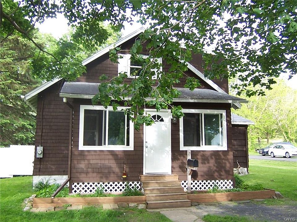 This home looks like your average Cape but WOW! It is so much more! Two story living room with hardwood floor and cathedral ceiling, huge kitchen with oak cabinets, center island and table area. Two bedrooms with hardwood floors and full bath down. The 2nd floor has a lovely master suite with 2 closets and custom tile bath! Double lot so no close neighbors - beautiful patio and surround sound inside and out. Basement has a B-Dry system.
