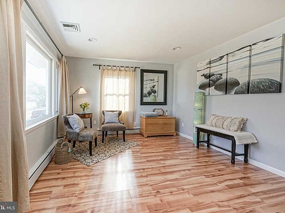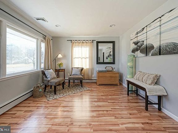 This charming rancher is located a block from the Delaware River and sits on a beautiful 1/4 acre parcel. Upgrades galore~ the list is a mile long~ call for your detailed list. (Almost everything has been upgraded) The house is meticulously maintained. Absolutely nothing to do except to move in and enjoy life! Fabulous open floor plan sought after for today~s lifestyle. Freshly painted throughout. All of the flooring has been replaced including hardwood laminate in the living, hallway, master bedroom and kitchen. New grey carpeting in the second and third bedrooms and ceramic tile floor in the bathroom. Light filled living room with plenty of room for a dining area opens to the gourmet kitchen with all the bells and whistles. Maple stained shaker style cabinetry, subway tile style backsplash & coordinating counter top, white porcelain sink with SS gooseneck faucet, garbage disposal & filtered water dispenser in this roomy kitchen. (Plenty of room for a table or island) Miele SS clean touch appliances ( NOTE: The oven is a prototype and will not be included in the sale. Another oven will be installed in its place) including a Refrigerator/Freezer, built in custom cabinet and wifi capable high end dishwasher with built in water softener. Sharp 30~ built in over the range microwave. Another big picture window, recessed lighting and lighted ceiling fan complete this great workspace. Three nice sized bedrooms and completely renovated hall bath all done up in shades of white, blue & grey~ including white fixtures & glossy grey subway tile. Laundry closet and loads of attic storage. Oversized 2.5 half car garage for many a hobby.. 2 large heavy duty work benches & 5 large heavy duty wood storage shelves and a Viking 36~ bottom mount refrigerator/freezer included. The fenced in yard also includes a paver patio and fire pit area. All of this at a great price! Enjoy incredible electrical savings with the leased solar panels. Wow!!!