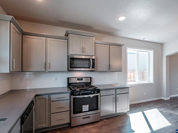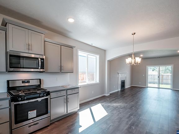 Last Home Available in River's Edge - Douglas E - MODEL HOME includes SS Frig, AC, Fence, Backyard Landscape. Efficient flr plan, Laminate flrs, wd wrapped windows on main, LR gas frplc, gourmet kitch quartz counters, SS appliances, GA range, craftsman-style cabs. 95%-efficient gas FA furnace, HardiePlank® Full Lap siding. Frt Yd Landscaped w/UGS. *Vets Get Free Frig. Pics/Gallery Actual Home/PanoTour Similar Home other Subdivision - Finishes may differ.