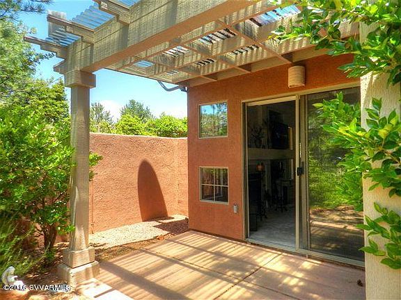 A superb Nepenthe patio home with very nice updates including shutters, other window treatments, and granite counter tops. New stainless appliances. Water softener, RO, security screen door, SimpliSafe alarm, complete insulation. This home is an end unit with a two car garage. Close to Sedona amenities. Private back patio with pavers and views. Pool and spa next door.