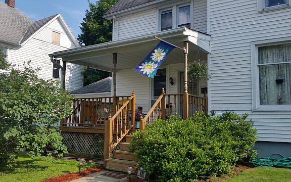 Reduced! Immaculately maintained home on a corner lot. Enjoy sitting on the front porch or side deck. Three bedrooms and one bath. Sitting room upstairs could easily be fourth bedroom. New economical gas furnace installed in November 2014 to keep those heating bills low. New windows and carpet. Hardwood floors under the carpet. Beautiful large eat-in kitchen with tile floors, lots of storage and lighting. First floor laundry is an added plus. A few blocks away from downtown Sayre and the hospital. Move in ready. This home is definitely a must see!