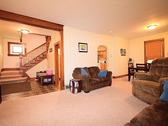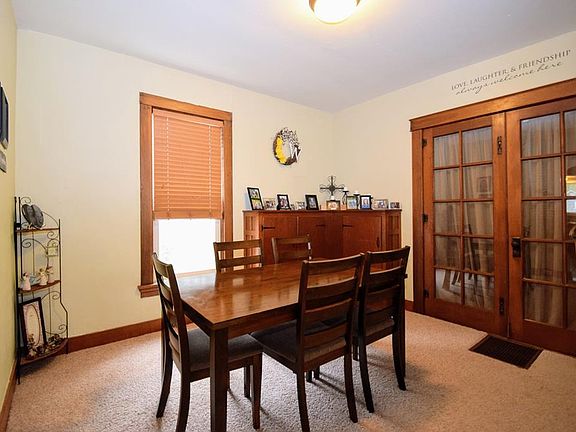 ACHIEVE THE AMERICAN DREAM! WELCOME TO THIS RELAXING 3 BEDROOM HOME WITH OPEN FLOOR PLAN AND BEAUTIFUL NATURAL WOODWORK. THE MAIN FLOOR FEATURES THE FOYER WITH A BEAUTIFUL STAIRCASE, LIVING ROOM, DINING ROOM, KITCHEN, LAUNDRY ROOM, HALF BATH & MASTER BEDROOM WITH FRENCH DOORS, SITING AREA & WALK IN CLOSET. UPSTAIRS FEATURES THE 2ND & 3RD BEDROOM, OFFICE AREA, BATHROOM & STORAGE. RELAX & ENJOY THE LARGE CORNER LOT WITH PRIVATE DECK, PLAY AREA AND PATIO WITH FIRE PIT. 2009 New furnace, fridge, stove, washer & dryer, 2010 New windows, 2012 New dishwasher, water heater, 2014 New roof & gutters, 2015, New humidier on furnace, 2016 Upstairs bathroom remodeled. Additional updates: chimney stabilized and removed from roof, new membrane on NW corner of house, also tuck pointed & resealed, new patio & landscaping, new window treatments, ceiling fans & light fixtures. Average utilities: Electric $117, Gas $43, Water/Garbage $58. City is stating there is room for a single stall garage or car port on the east side of the home. Variance can be requested possibly to adjust garage to a larger dimension. 100%USDA Financing Available for Qualified Buyers. No Down Payment!!
