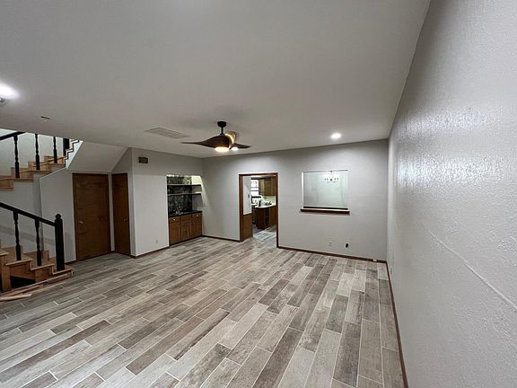 2 large bedrooms each with their own bathrooms on the 2nd floor. Double closets in the master. Downstairs includes a 1/2 bath, large living room, dining room, kitchen and laundry room. 2 car auto garage parking. Yard maintenance included, a pebble stone courtyard located in front. Located right downtown within walking distance to everything. Hardwood floors upstairs and tile downstairs, new appliances including washer and dryer, stove, fridge with ice and water in door, dishwasher. Great large space perfect for a working professional couple or small family, single bachelor or bachelorette pad! Large living room with a wet bar all modern and updated. 12 month Tenant pays all bills Different lease terms available for qualified guests including: Fully furnished options All bills paid options 30 day+ options