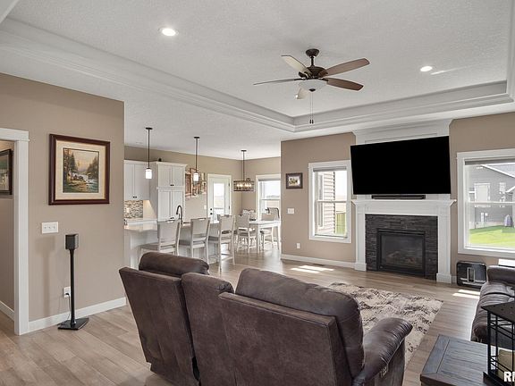 Looking for a like new, zero entry ranch home that offers custom finishes, large corner lot, and quality construction from Encore Homes, this is it! This 4 bedroom, 4 bath home was completed in 2019 and offers a functional open floor plan with gas fireplace and natural light throughout. The bright kitchen has stainless steel appliances, stylish back splash, under cabinet lighting, and spacious pantry which flows into an informal dining area. Enjoy the outdoor living space which has been updated with a low maintenance decking and pergola. The walk out basement was finished recently with large rec room, bedroom with shared full bathroom and plenty of storage. Owners even added additional laundry hook ups in the basement for guest or kids! The garage is extra deep for additional room for toys, storage, etc! This zero entry ranch home offers function and style just minutes outside the QC.