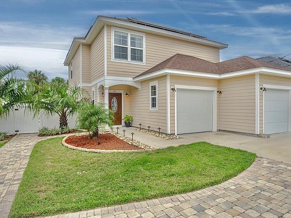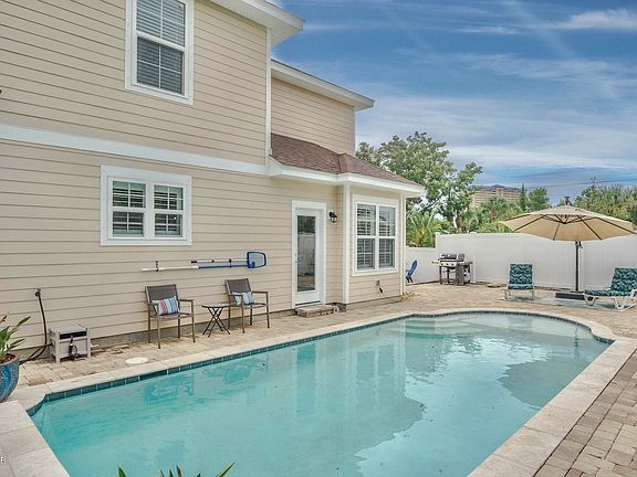Fabulous POOL HOME, 2 blocks to the beach access and 8 restaurants, including Runaway, Sharkys, plus golf cart distance to Pier Park, with hundreds of shops and restaurants. This is a gorgeous 2 story home, that has been upgraded to include $60K of solar panels, that result in a power bill of only $150.00 per month! This parcel is high & dry, approximately 27 ft above sea level, and has never flooded. The pool is only 3 years old and is surrounded by lovely pavers for plenty of patio/entertaining space. Inside, the new wood-look tile flooring is maintenance free and the granite countertops in kitchen and baths are timeless. There's a 4th bedroom and full bath on the ground floor, perfect for guests who would rather not traverse the stairs. A 2 car gar w/circular drive, provide lot