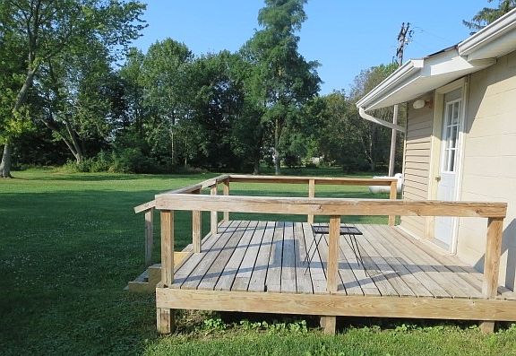 Country feel, this house is located to the very east of the town limits with no neighbors to the rear. A view of the park can be seen from the back yard. Large lot with 2 large sheds,one with concrete floor. Bathroom and kitchen have been remodeled. Interior completely repainted. New storm door. Nice deck to the back all for a low price! Possible 3rd bedroom if move utility room to extra/ breezeway room. LP tank is not be included in the sale.
